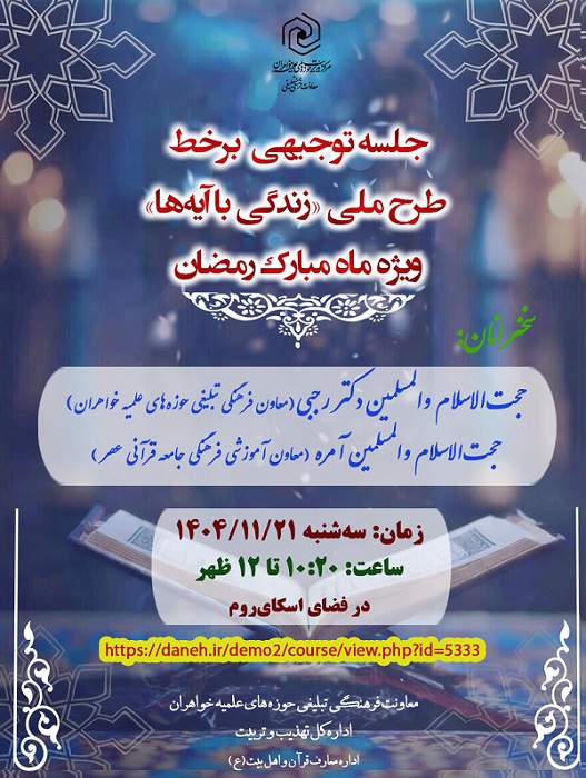 به گزارش واحد اطلاع رسانی، بهمنظور بهرهگیری هرچه بیشتر از فرصتهای معنوی ماه مبارک رمضان، معاونت فرهنگی ـ تبلیغی حوزههای علمیه خواهران کشور اقدام به اجرای طرح ملی «زندگی با آیهها» کرده است. در همین راستا، جلسه توجیهی آنلاین این طرح با حضور معاون فرهنگی ـ تبلیغی حوزههای علمیه خواهران و نماینده جامعه قرآنی برگزار میشود.